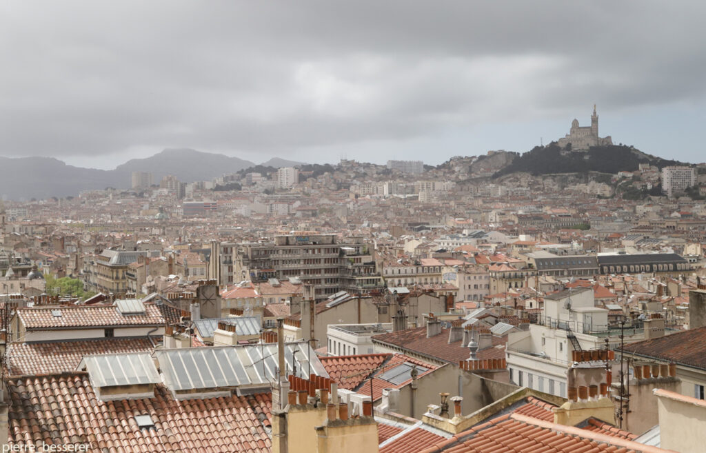 Ce territoire peut se définir ainsi : une pointe sud marquée par le monastère des clarisses dont j’aperçois la croix de pierre dressée sur sa chapelle, une pointe nord qui s’appuie sur l’immeuble qui héberge le Centre biblique international Flamme d’Éveil, boulevard National****. Les extrémités ouest et est correspondent à des sanctuaires plus éloignés, cette fois bien visibles pour moi : la chapelle de l’hôpital Caroline sur l’ile du Frioul, à 9 km à vol d’oiseau et que je ne peux pas rejoindre sans prendre le bateau. Et l’église Saint-Augustin Beaumont à la Fouragère à 5 km.