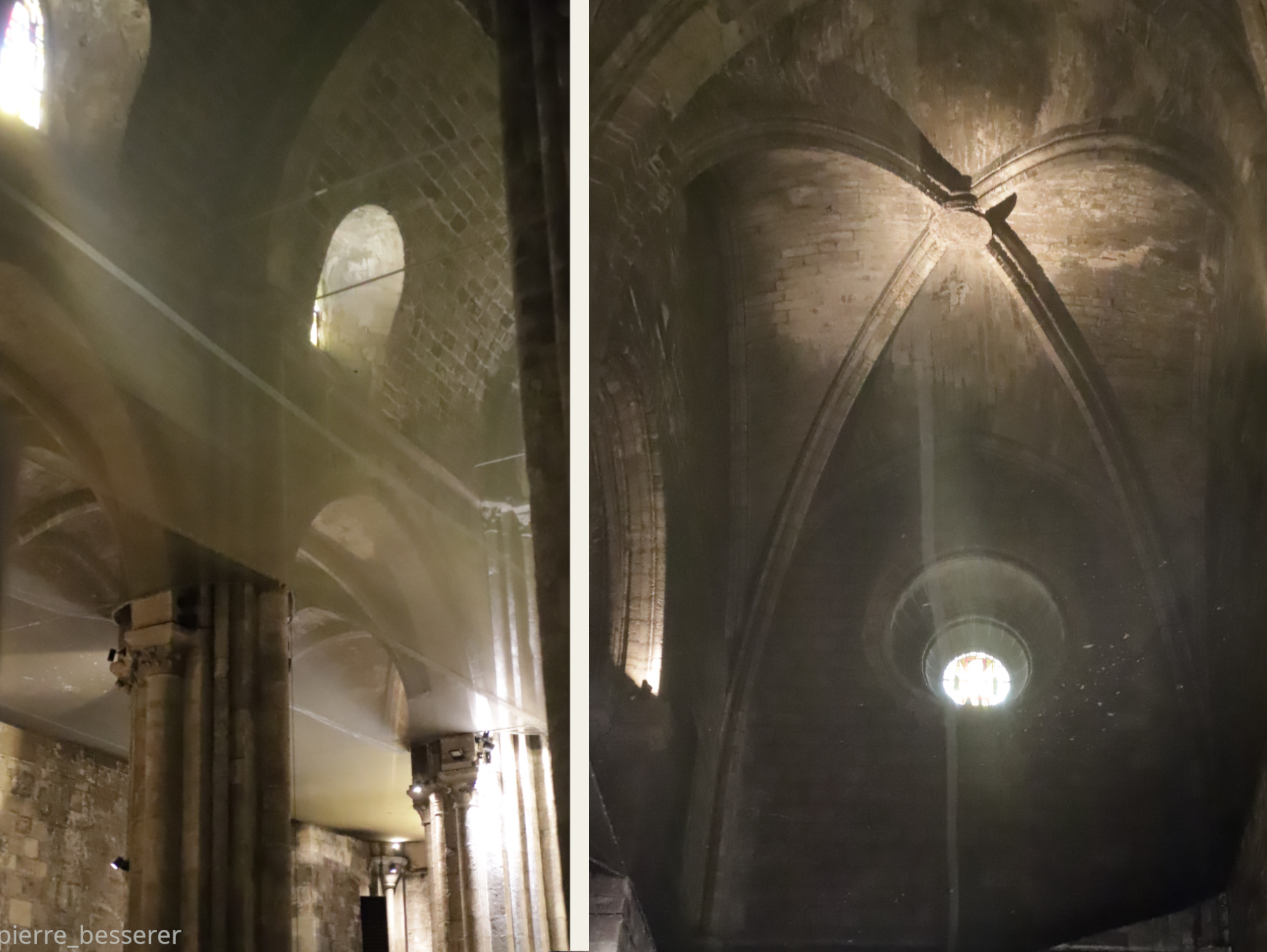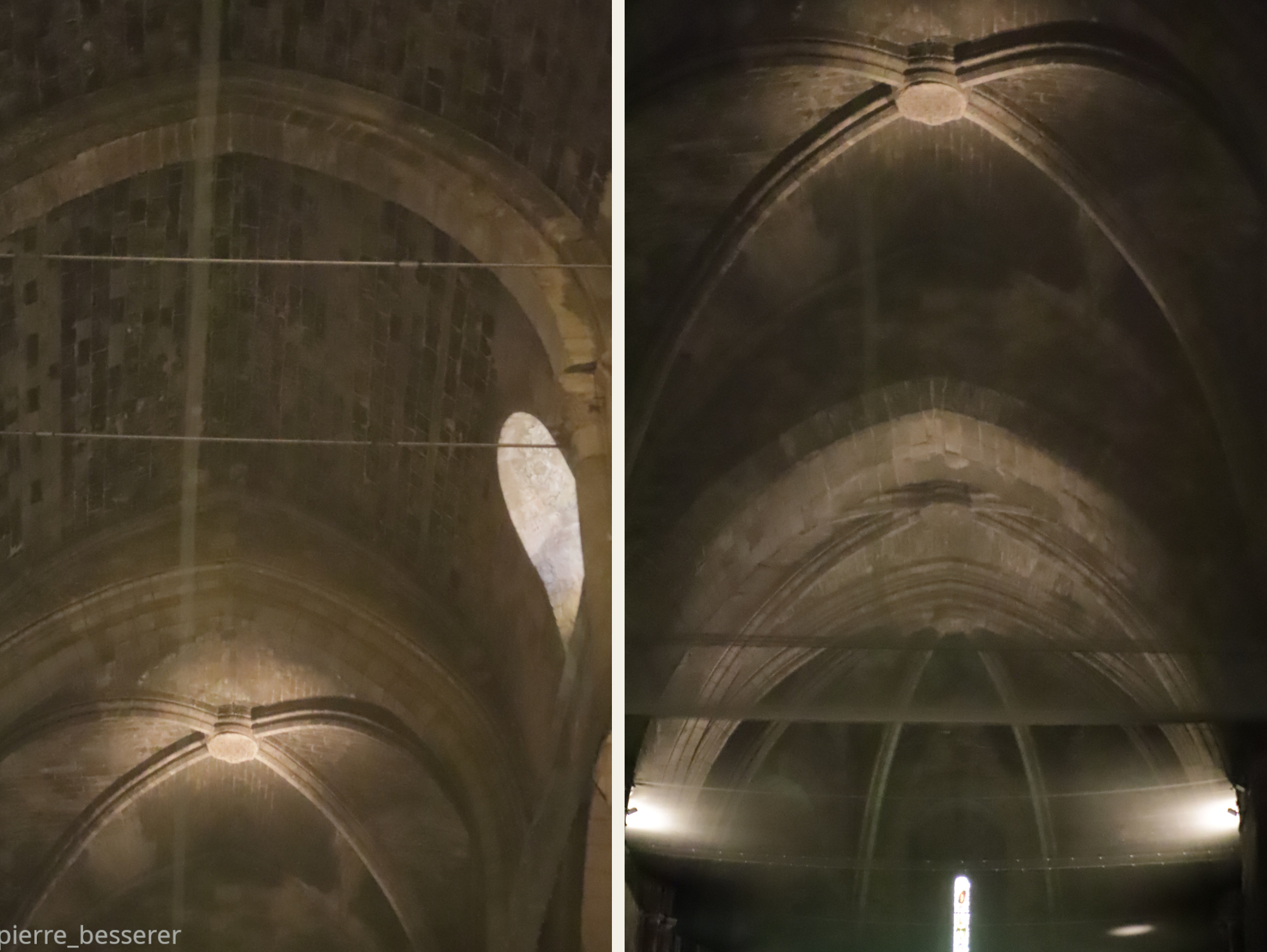 Je ne reproduirai pas ici les contenus de sites dédiés, consacrés à la trop riche histoire de Saint-Victor, de son édification à sa déchéance et son démantèlement. Je préfère approcher par touches ce qui fait ma fascination pour le bâtiment, l’ambiance spirituelle marron-vert qu’il déploie sous des filets, sa crypte et les mystères et migrations de saint Lazare et de saint Victor. Avec autant de voiles que de pointes fécondes pour l’imaginaire.