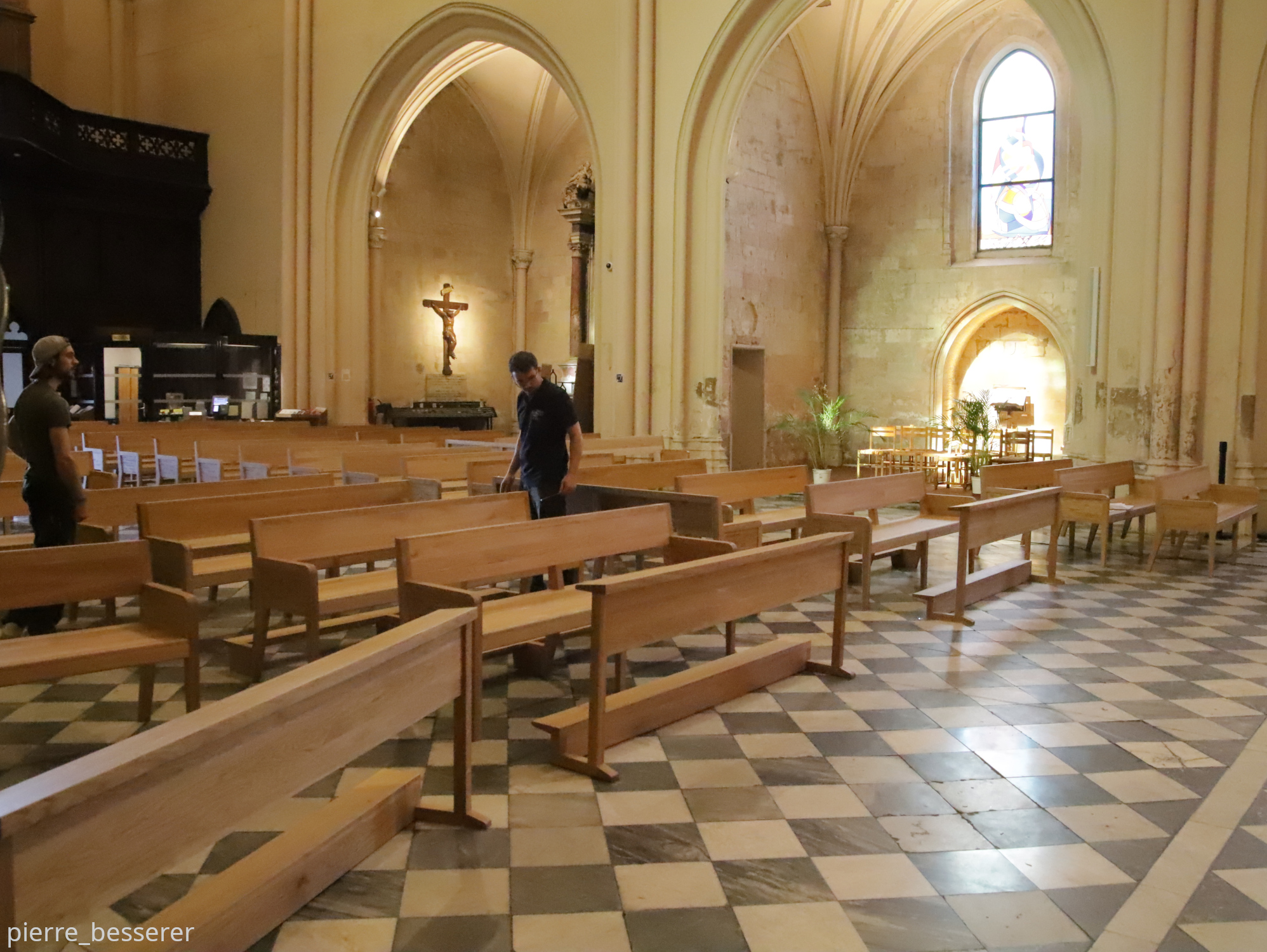 Une remonté de l’allée centrale, fait parcours de l’histoire du salut au travers de l’Ancien Testament, puis du Nouveau, de la Création à la révélation du Christ. Et, comme en écoulement retour par le allées latérales, le souvenir de cette première diffusion du christianisme sur le pourtour méditerranéen. Un cheminement dans l’église qui fait de nous ces pèlerins d’Espérance que nous sommes invités à devenir.